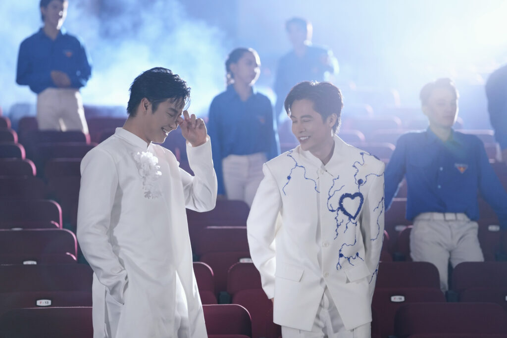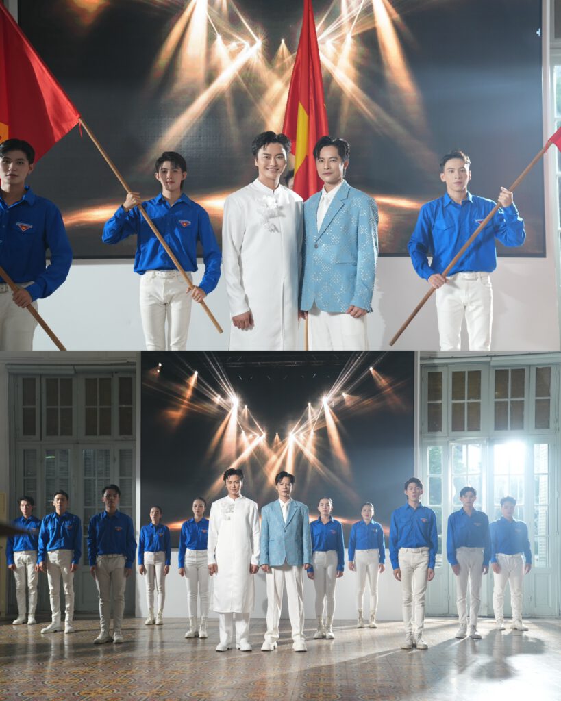 Đặc biệt, lần đầu tiên trong một sản phẩm âm nhạc cổ động, âm hưởng cải lương được đưa vào như một điểm nhấn văn hóa độc đáo – vừa tái hiện khí chất truyền thống, vừa tạo cầu nối giữa tinh thần quá khứ và sức trẻ hiện tại. Ca sĩ Minh Sang chia sẻ, trong quá trình hòa âm cùng đạo diễn – producer Trần Vũ, anh nảy ra ý tưởng làm mới sản phẩm của mình bằng những thanh âm truyền thống dân tộc. Và nhạc sĩ – đạo diễn Trần Vũ đã hiện thực hóa ý tưởng đó với một đoạn giang tấu mang âm hưởng cải lương nhưng tiết tấu nhanh, cuốn hút để hòa hợp với tinh thần chung ca khúc. Và NSƯT Võ Minh Lâm, một trong những giọng ca tiêu biểu của sân khấu cải lương hiện nay, là lựa chọn không thể phù hợp hơn. Anh không chỉ góp giọng mà còn trực tiếp viết lời cho đoạn giang tấu cải lương trong MV – thể hiện hình tượng tướng quân uy phong, tượng trưng cho lớp người đi trước, đồng hành cùng thế hệ trẻ bước vào kỷ nguyên mới. Sự hòa quyện giữa giọng hát hiện đại của Minh Sang và chất cải lương truyền cảm của Võ Minh Lâm không chỉ mang giá trị âm nhạc mới lạ, mà còn gợi lên tinh thần “kết đoàn dân tộc” – nơi truyền thống và đổi mới cùng hòa trong một bản sắc Việt Nam trẻ trung, bền vững.