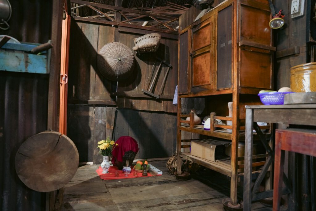 Khi đã chọn được bối cảnh chính, anh quyết định dựng toàn bộ ngôi nhà của gia đình bà Hiền. Theo tiết lộ của đạo diễn Trương Dũng, để hoàn thành công việc này ê-kíp đã tốn hơn 1 tháng với 15 nhân công liên tục làm ngày đêm, chỉ nghỉ khi trời mưa. Vì địa thế dựng ngôi nhà là khu vực khá hoang sơ nên ê-kíp phải dọn dẹp sạch toàn bộ trước khi thi công. Đặc biệt, vì khu vực này sình lầy, khiến ê-kíp thiết kế, bối cảnh gặp rất nhiều khó khăn nhằm đảm bảo an toàn tuyệt đối trong suốt quá trình từ thi công đến quay phim. Họ đã phải sử dụng tổng cộng hơn 800 cây cừ tràm, cùng nhiều vật dụng để có thể dựng ngôi nhà này. Với những yêu cầu rất khắt khe của đạo diễn, tổ thiết kế phải làm cũ mọi vật dụng trong nhà, từ từng tấm ván lát sàn, những cây cột dựng nhà, mái lá hay từng vật dụng như chiếc bàn, chiếc ghế, các hũ đựng gia vị trong gian bếp… đều phải mang hơi thở của con người, nhuốm màu thời gian.