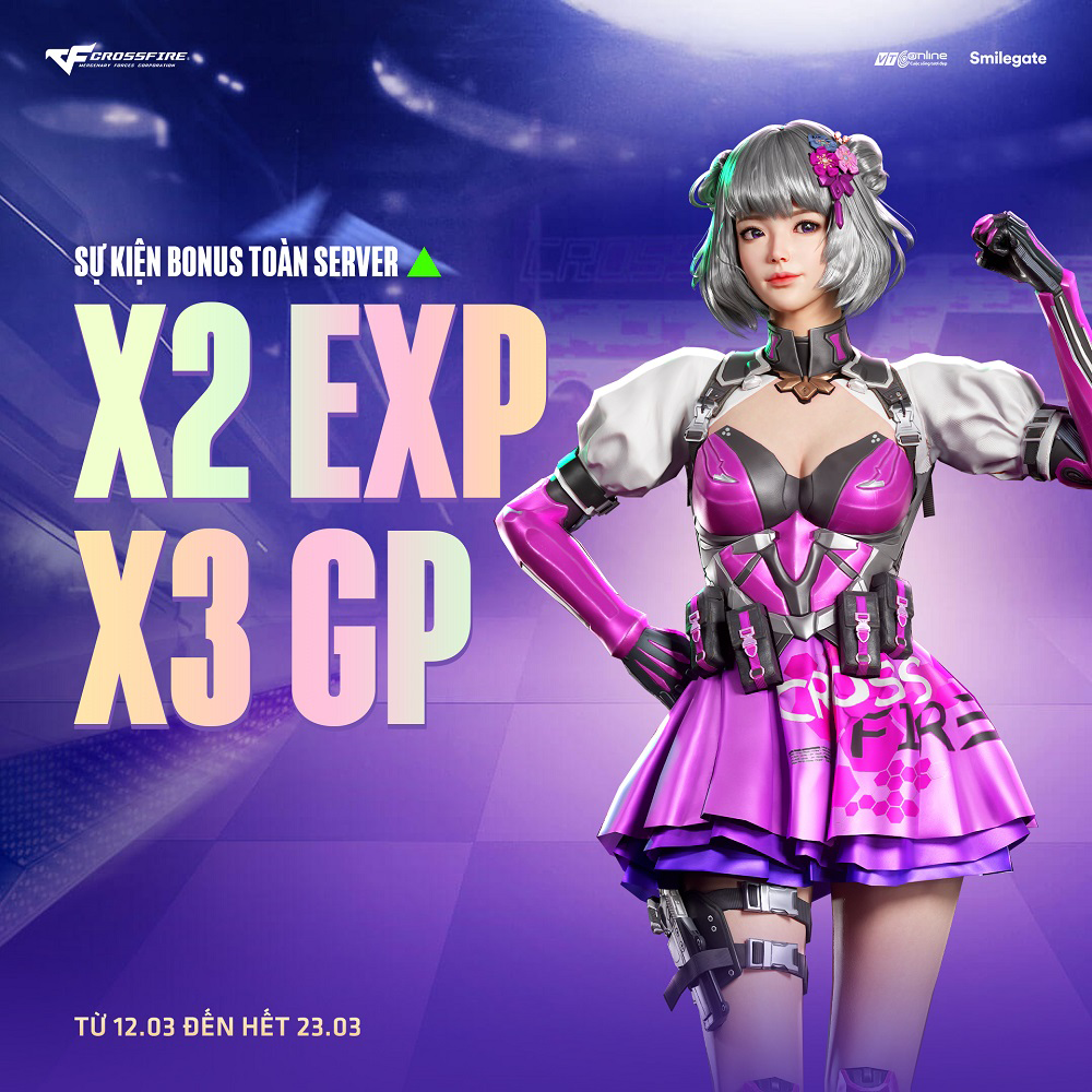 Game thủ Crossfire sẽ nhận được ưu đãi nhân kinh nghiệm khủng từ ngày 12/3 – 23/3 trong sự kiện Bonus toàn server. Theo đó, sẽ có nhân đôi kinh nghiệm và nhân 3 điểm GP dành cho tất cả mọi người.