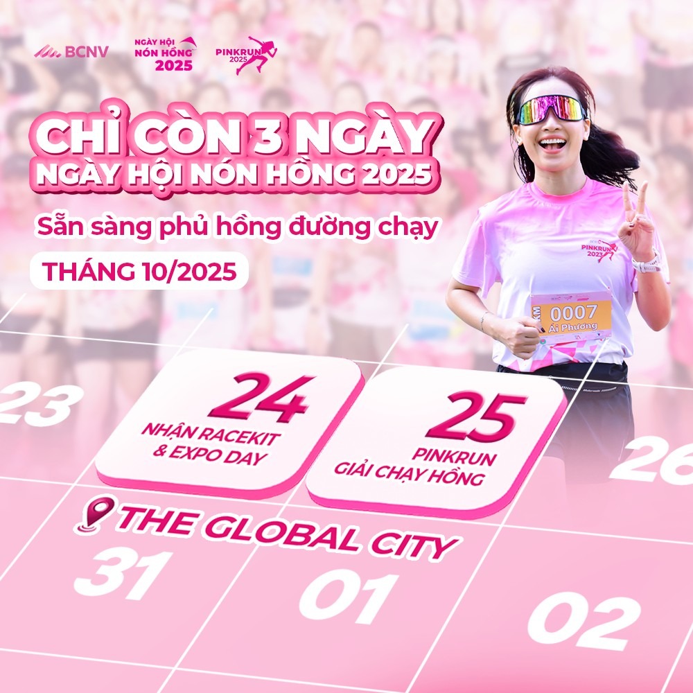 Ngày 25/10/2025 tại The Global City, Giải Chạy Hồng (Pink Run) sẽ chính thức diễn ra, trở thành điểm hẹn của hàng ngàn trái tim cùng chung nhịp đập vì cộng đồng. Chỉ sau 48 giờ mở đăng ký, sự kiện đã bán ra hơn 500 vé, minh chứng cho sức hút mạnh mẽ và tinh thần lan tỏa mà giải chạy mang lại.