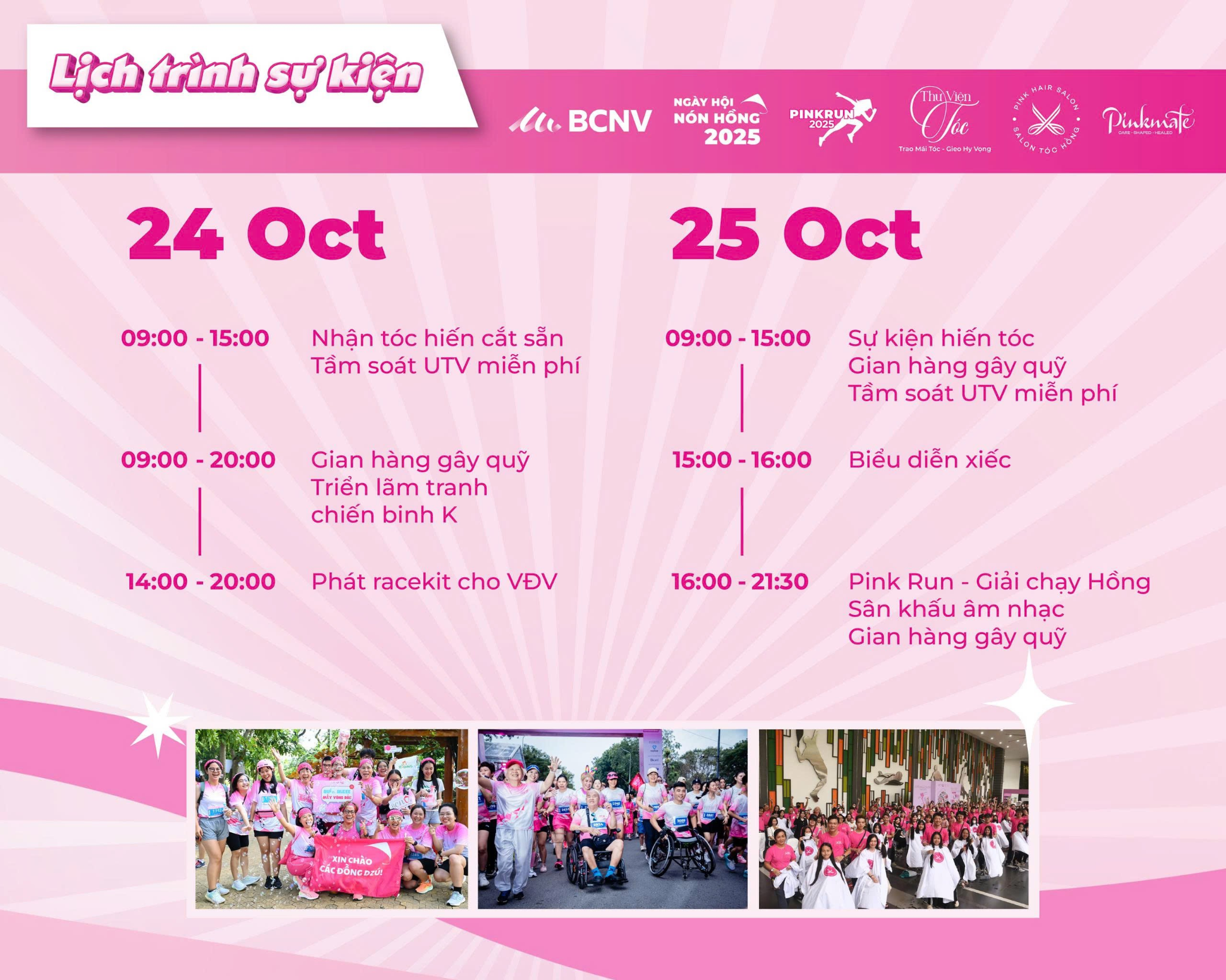 ● Gian hàng gây quỹ, khu vực triển lãm và Pink Healing – nơi cộng đồng cùng góp sức hỗ trợ và nhìn lại hành trình nghị lực của các chiến binh Hồng.