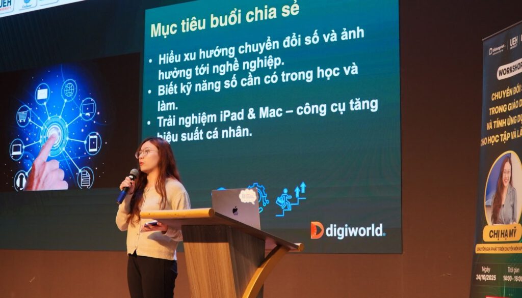 Trong bối cảnh chuyển đổi số đang diễn ra mạnh mẽ trên toàn cầu, việc ứng dụng công nghệ vào giáo dục đã trở thành xu thế tất yếu. Nhằm lan tỏa tinh thần học tập sáng tạo và khai mở tiềm năng của sinh viên trong kỷ nguyên số, D.Educare của Di Động Việt vừa tổ chức thành công workshop “Chuyển đổi số trong giáo dục & Tính ứng dụng cho học tập và làm việc” tại Trường Đại học Kinh tế TP.HCM (UEH).