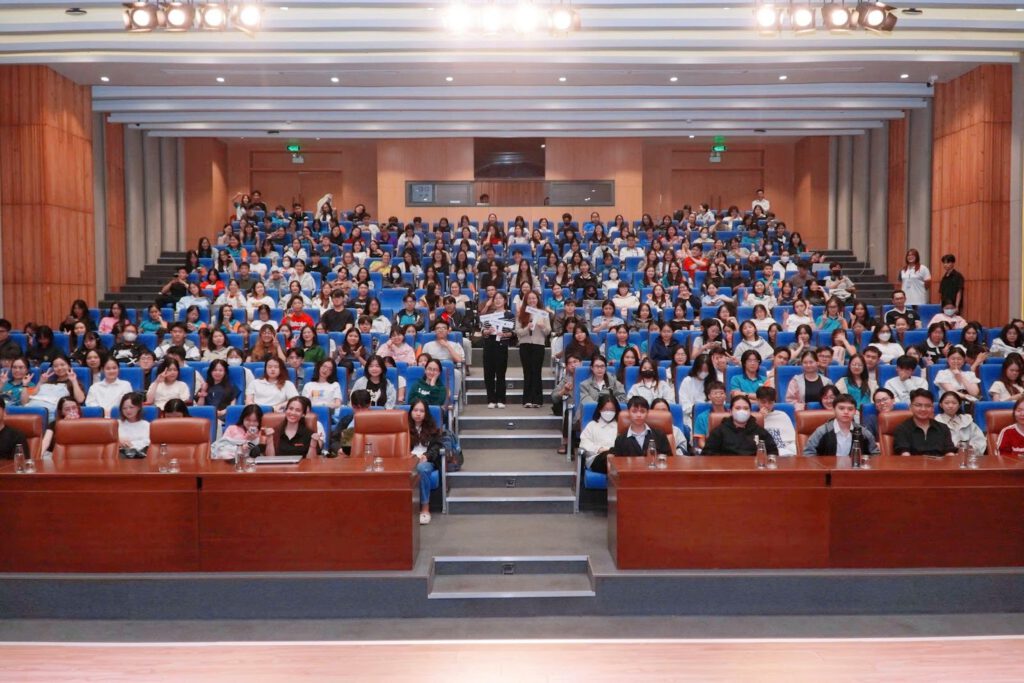 Sự kiện thu hút gần 300 sinh viên tham dự, cùng lắng nghe những chia sẻ đầy cảm hứng từ chị Hạ Mỹ – Chuyên gia phát triển chuyên môn của Apple, về cách công nghệ đang từng ngày thay đổi cách chúng ta học tập, sáng tạo và làm việc.