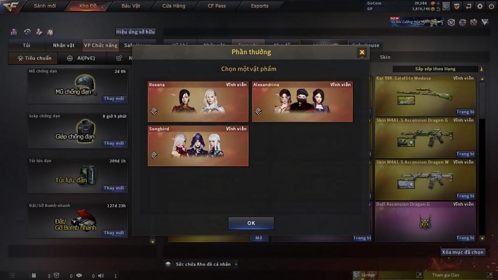 - Hòm Tùy Chọn nhân vật VIP Infinity: Roxana, Alexandrina, Songbird,…
