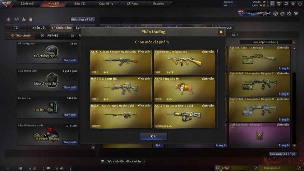 - Hòm Tùy Chọn vũ khí Noble Gold: AK-47-K-Steel Empire-Noble Gold, Thompson D Infernal Noble Gold, M4A1-S-G Spirit Noble Gold,…