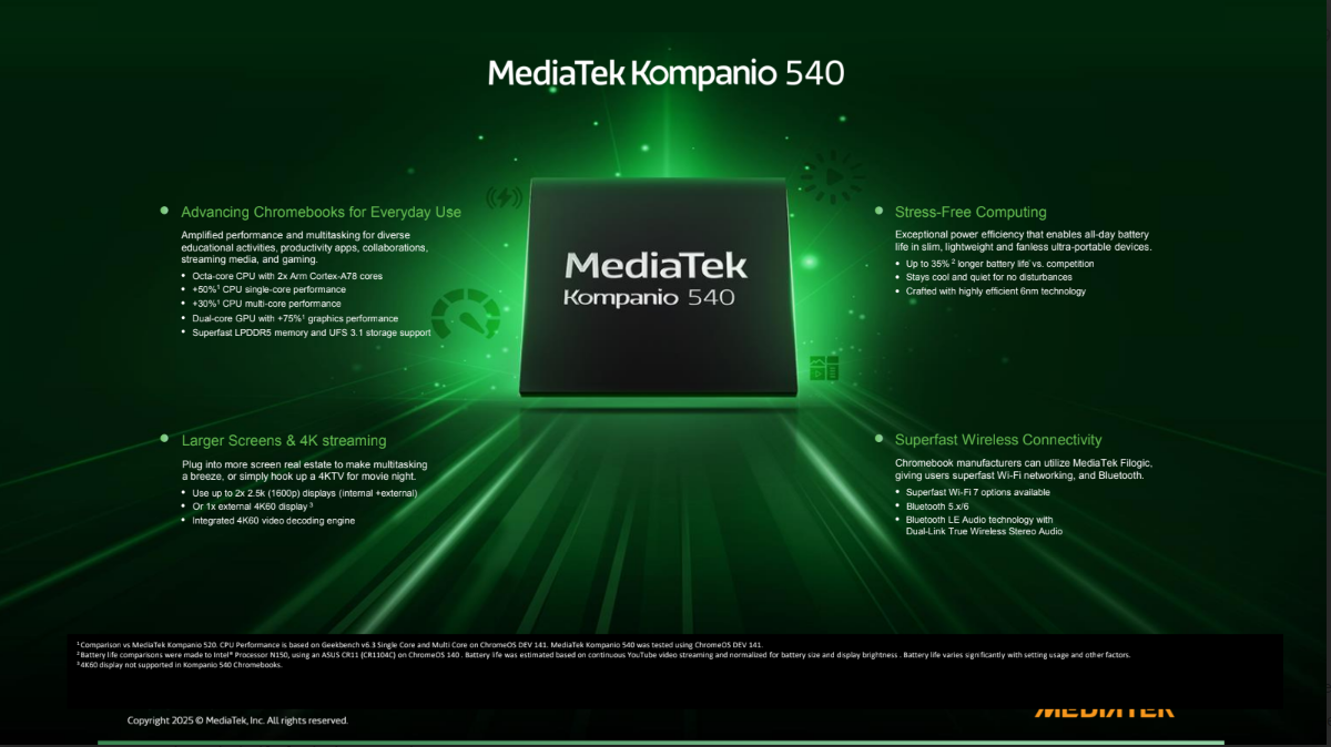 Các mẫu Chromebook sử dụng chip MediaTek Kompanio 540 sẽ có mặt trên thị trường từ tháng 01.2026.