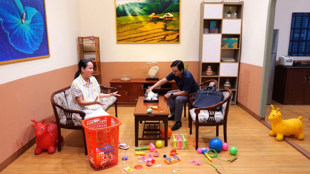 Hoàng Anh và Như Hạnh hóa thân thành đôi vợ chồng trẻ, chia sẻ nỗi lo lắng về việc nuôi dạy con cùng bố Sơn Hải. Nếu như thế hệ trước hầu như không phải đối mặt với những vấn đề như tăng động giảm chú ý ở trẻ, thì ngày nay các rối loạn phát triển này lại xuất hiện ngày càng nhiều. Một trong những nguyên nhân lớn đến từ việc cha mẹ ít dành thời gian trò chuyện, tương tác với con. Bản thân Hoàng Anh cũng là ví dụ điển hình khi thường để con sử dụng điện thoại thông minh thay vì chơi cùng con.