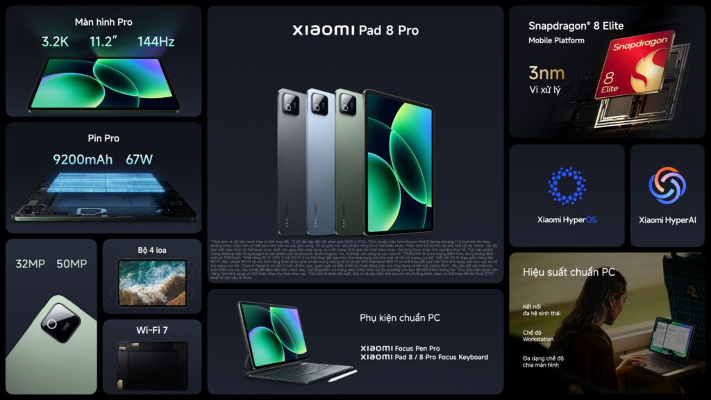 Thành phố Hồ Chí Minh, ngày 28 tháng 2 năm 2026 – Xiaomi chính thức ra mắt Xiaomi Pad 8 Series tại Việt Nam – thế hệ máy tính bảng cao cấp mới với thông điệp “Hiệu suất toàn năng”. Xiaomi Pad 8 Series hướng đến nhóm người dùng hiện đại, đang tìm kiếm một thiết bị mạnh mẽ cho công việc nhưng vẫn đảm bảo tính linh hoạt. Sở hữu hiệu năng vượt trội từ các vi xử lý Snapdragon 8 Elite hàng đầu, màn hình 3.2K 144Hz sắc nét, dung lượng pin lớn 9200mAh cùng hệ sinh thái phụ kiện cao cấp, Xiaomi Pad 8 Series được phát triển để mang đến trải nghiệm hiệu suất chuẩn PC cho người dùng hiện đại, từ xử lý văn bản, họp trực tuyến cho đến sáng tạo nội dung.